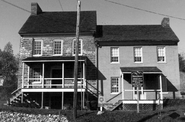 By the end of the French and Indian War, Michael had reached maturity and married a Miss Whitehead of Philadelphia. He established himself as a trader and constructed his own home near his father's fort and trading post at Oldtown. It was constructed of fieldstone rearing up two and a half stories and was more a fort than a dwelling. As shown in the accompanying photos, his house still stands. It is located on Main Street in Oldtown and has recently been renovated. George Washington once was entertained here. Also, the basement was once used as a jail as well as a kitchen and is supplied with its own freshwater spring. Even in its better days, the Michael Cresap House was plain and utilitarian. Nevertheless, it was the most elaborate of its time in the region.
