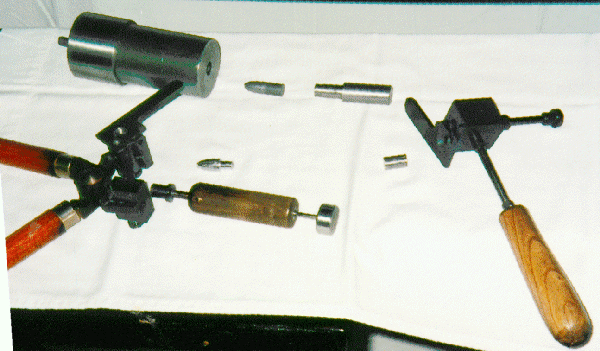 Swage block and bullet molds for two piece slug gun bullet. |