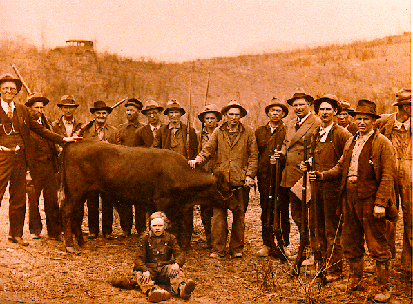 This photograph, provided by the Andrew York family, shows the types of firearms used in the early 1920's and `30's. The fifth person from the right, in this photograph, is Alvin York. |