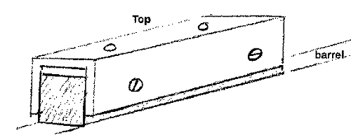 This sawed-off piece is then cleaned up with files and soldered to the underside of the roof created by the ``U'' shaped tubing. This will increase the thickness of the top layer, giving more support for the sight mounting screws. Two #31 holes are drilled in the center of this base to correspond to the hole spacing of the sight. They are then threaded with a 6-48 tap. The sight can now be secured to the top of this ``U'' shaped base.