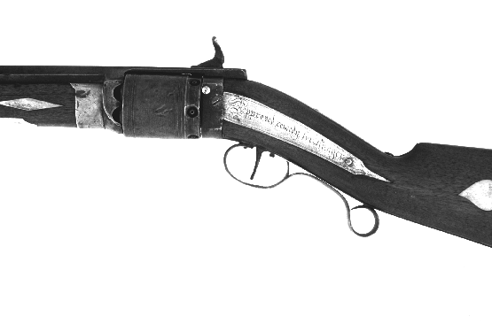 This Revolving Repeating Rifle is one of many guns on display at the restored Jonathan Browning gun shop in Nauvoo, Illinois. |