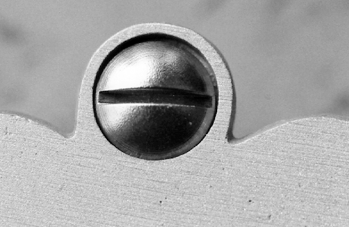 The countersunk recess for the head of the lock bolt will conceal small mistakes in lining up a true 90 degrees between plate and hole. |