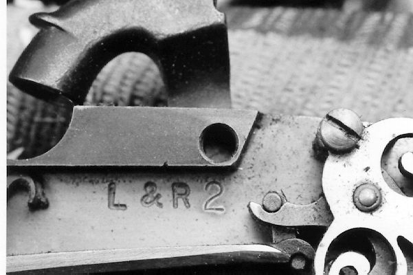 Fortunately, help is on the horizon. Bill Cox, President of L & R Lock Company, Inc., has recently developed a line of side plates which are compatible in style and dimensions with his fine locks. The availability of side plates designed to complement specific locks eliminates the frustration of wanting to use a given side plate on a particular style rifle, only to find that its dimensions make it incompatible with the lock. Parts suppliers have addressed this problem to some extent by casting side plates with elongated forward extensions which can be cut and shaped to accommodate locks of various dimensions. Track of the Wolf has gone one step farther and has pictured side plates and many other parts at exact actual size in their excellent catalog so that one can measure bolt-to-bolt distances and other necessary dimensions. Now, with the debut of the L & R line of side plates, side plate junkies such as me may be able to give up gradually the security blanket of keeping bushels of side plates to cover any contingency of style and dimensions.