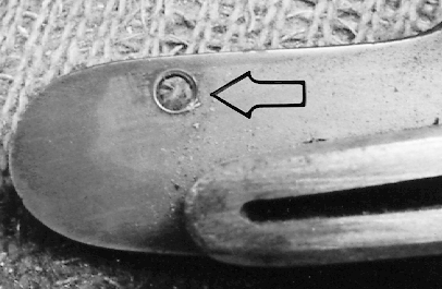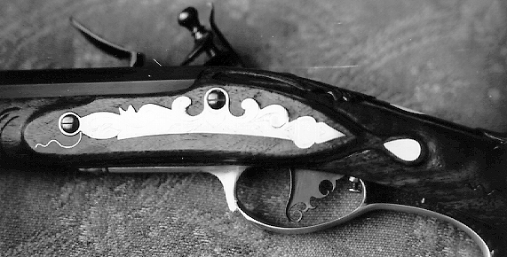 When the forward tip of this side plate had to be tipped up a bit to avoid interference of the lock bolt with the ramrod, I used a little wire inlay to restore the balance of the plate. |
