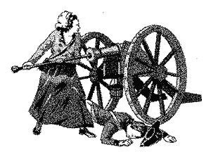 Though no portraits or contemporary drawings of her exist, it is easy to picture this Irish country lass as a spunky, good-natured girl, for whenever she could take time from her chores, she liked to join John and the other members of the battery during artillery drills. The men called her by the affectionate name of "Molly" or "Moll" and taught her how to swab out the cannon between shots, pour the charge of powder down the barrel, and ram the six-pound ball home.