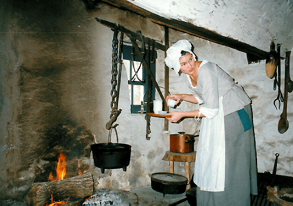 Early well-to-do settlers built their kitchens in the basements of their homes. This was for fire protection and also to keep the heat from cooking out of the living quarters in the hot summers. |