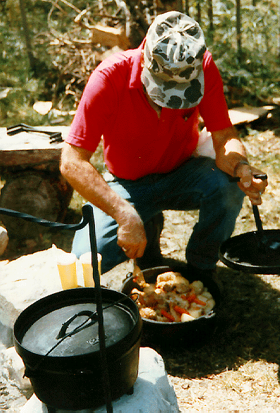 The author's father, Mondell, is preparing a Duch oven dinner for a family gathering. You can almost smell the food just from looking at it. |
