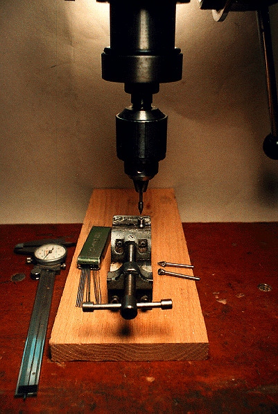 Touch hole liner set up to modify. Torch tip, cleaning wires, and caliper