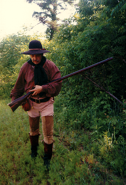 In a frontier situation, rarely was the rifle fired from an exposed off-hand position. We all know that firing from a rest position is more accurate and exposes less of the body to enemy view (or a deer's view). We know this is true from many battle descriptions of firing "from behind trees and fallen logs.'' Because of this, I would like to see more "any position" or "rest position" matches. It would be more like the real thing. Could this be why chunk gun and cross-stick matches are so popular?
