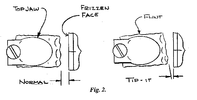 Withdraw your ramrod and return it to the thimbles of your rifle. Now cradle the rifle in your left arm with your left hand gripping the wrist, thumb over the wrist, muzzle to the left and pointed in a safe direction, somewhat like Fig. C. This position presents the pan and frizzen area for your inspection and manipulation. (Note: if you are at a match, use a position that keeps that muzzle down range, or make sure you stand side ways.)