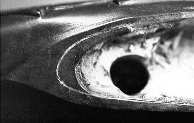 hole was then plunge milled with a 3/8" end mill (trying to use a conventional drill bit for this operation