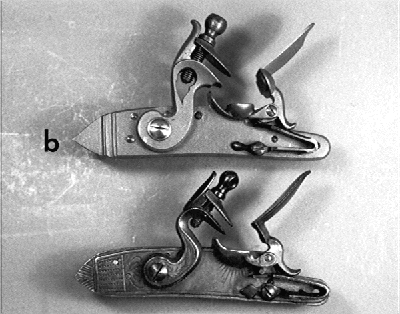 surfaces of either of the cock jaws (Fig. 4). Even with the flint expoxied into its leather sandwich (which has